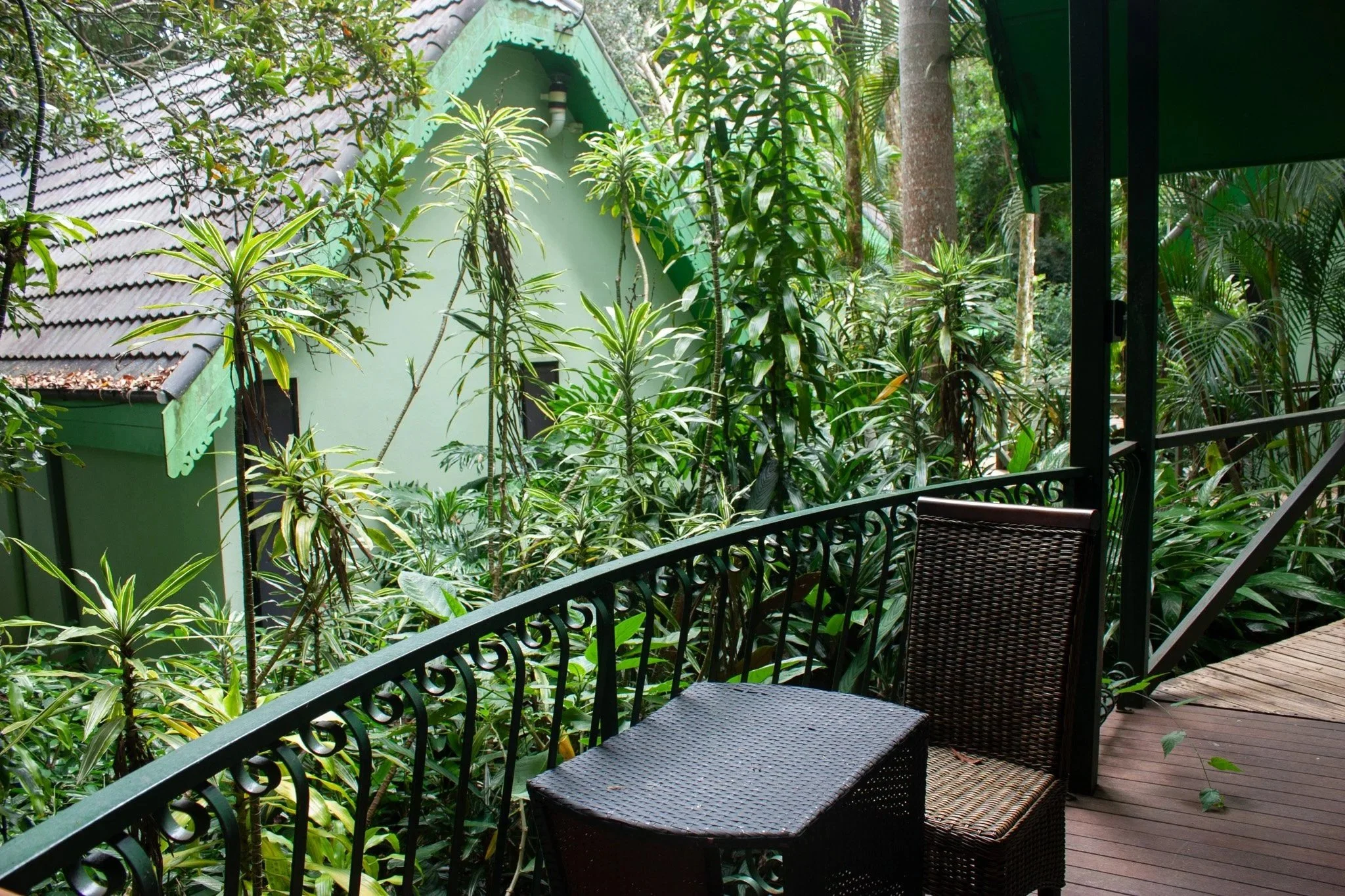 A private veranda surrounded by greenery